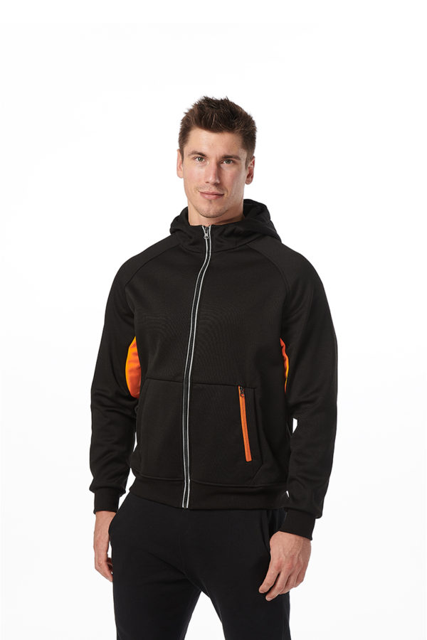 Premium durable 420 grams two-layer polyester/cotton jersey knitted fleece. Cotton-lined inner fabric offers breathability and comfort. Full zipper front. 2 front storage pockets, witch additional zipper pocket. Rib knit sleeve cuffs and waistband for comfort and snug fit.